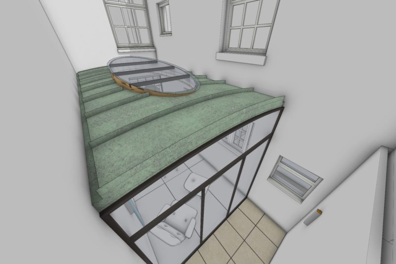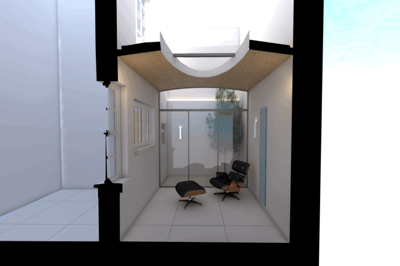 A recent project into the practice. The enclosure of a courtyard to create more habitable internal space. We have surveyed the property and designed a number of options for discussion with the client. The key consideration is the form of the roof and the integration of rooflights within it. Our designs explore a range of options from a totally glass roof to a solid roof with a large rooflight as a central feature. We also explore the retention of an amount of outdoor space and the advantages this will offer in terms of aspect and natural ventilation. It is our experience in designing with glass that led the client to select Shape Architecture and we look forward to the further development of this project in 2026.