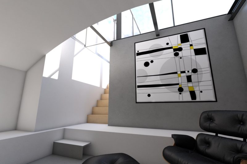 Currently on site this project relocates the kitchen to an existing space where the ceiling is removed to create a vaulted volume. New rooflights and glazed doors are added and the kitchen is transformed. The previous location for the kitchen merges with the existing living room to create one large space with new glazed doors giving onto the garden. Upper level bathrooms are also redesigned. The property is transformed through some simple changes.