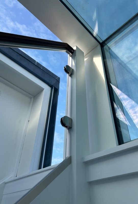 Our project at Norfolk Road involves an extensive roof terrace in a prominent conservation area, adjacent to a listed building. Accessed via a glazed box, the new terrace provides valuable outdoor space and sweeping views, transforming a property with only a small garden. Alongside this, two substantial first-floor rear extensions were added, creating en-suites and walk-in wardrobes for the rear bedrooms. The result is a home that combines sensitive design with significant improvements in light, space, and functionality.