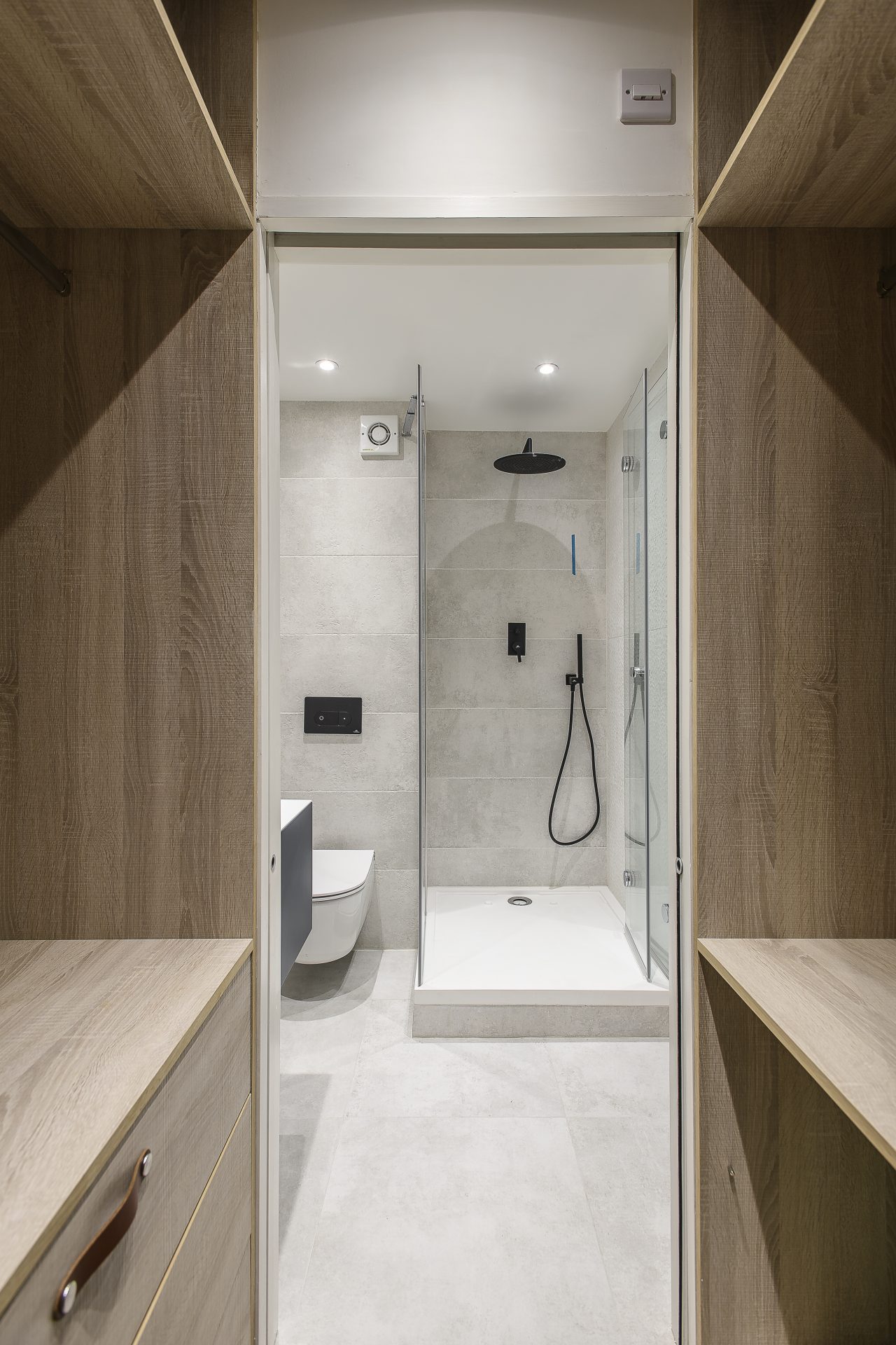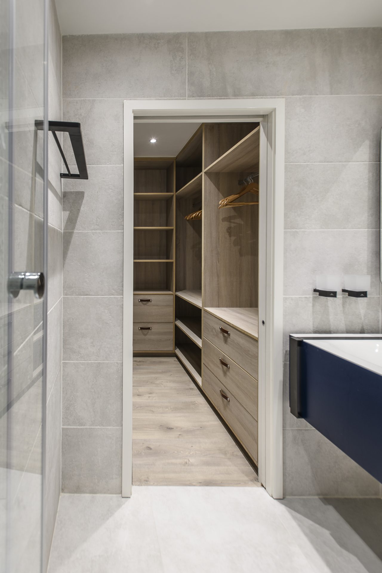 The walk-in-wardrobe is paired with an en-suite to giving off the Master bedroom. Shape Architecture has a wide-ranging experience in designing such spaces, either as a project or part of larger works.