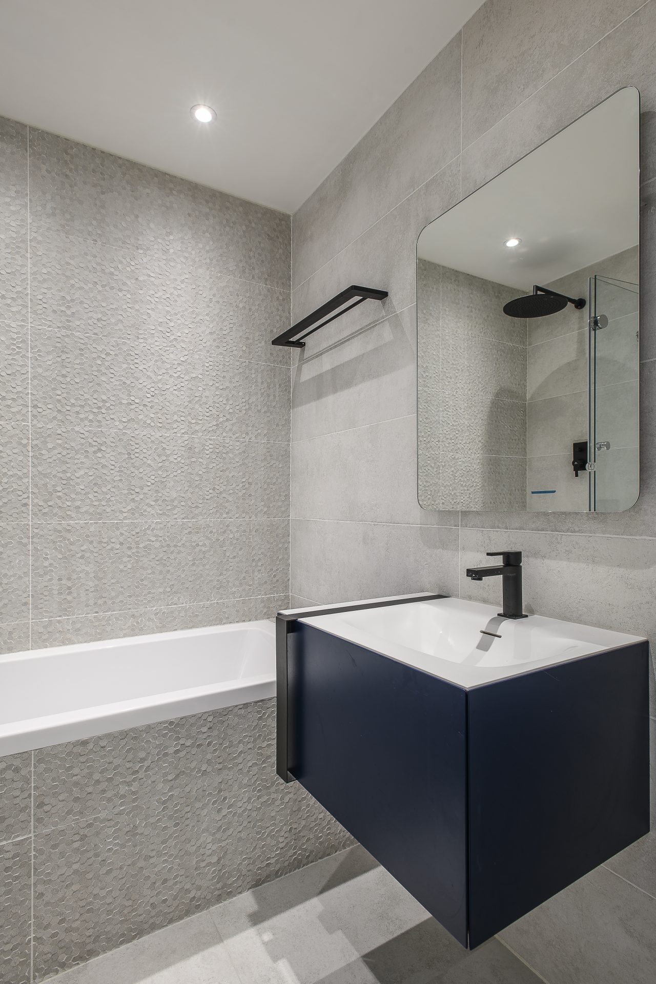 We have relocated and designed new bathrooms, walk-in-wardrobes, and kitchen alongside, two new balcony spaces. What was a tired flat is now a light, bright contemporary space.