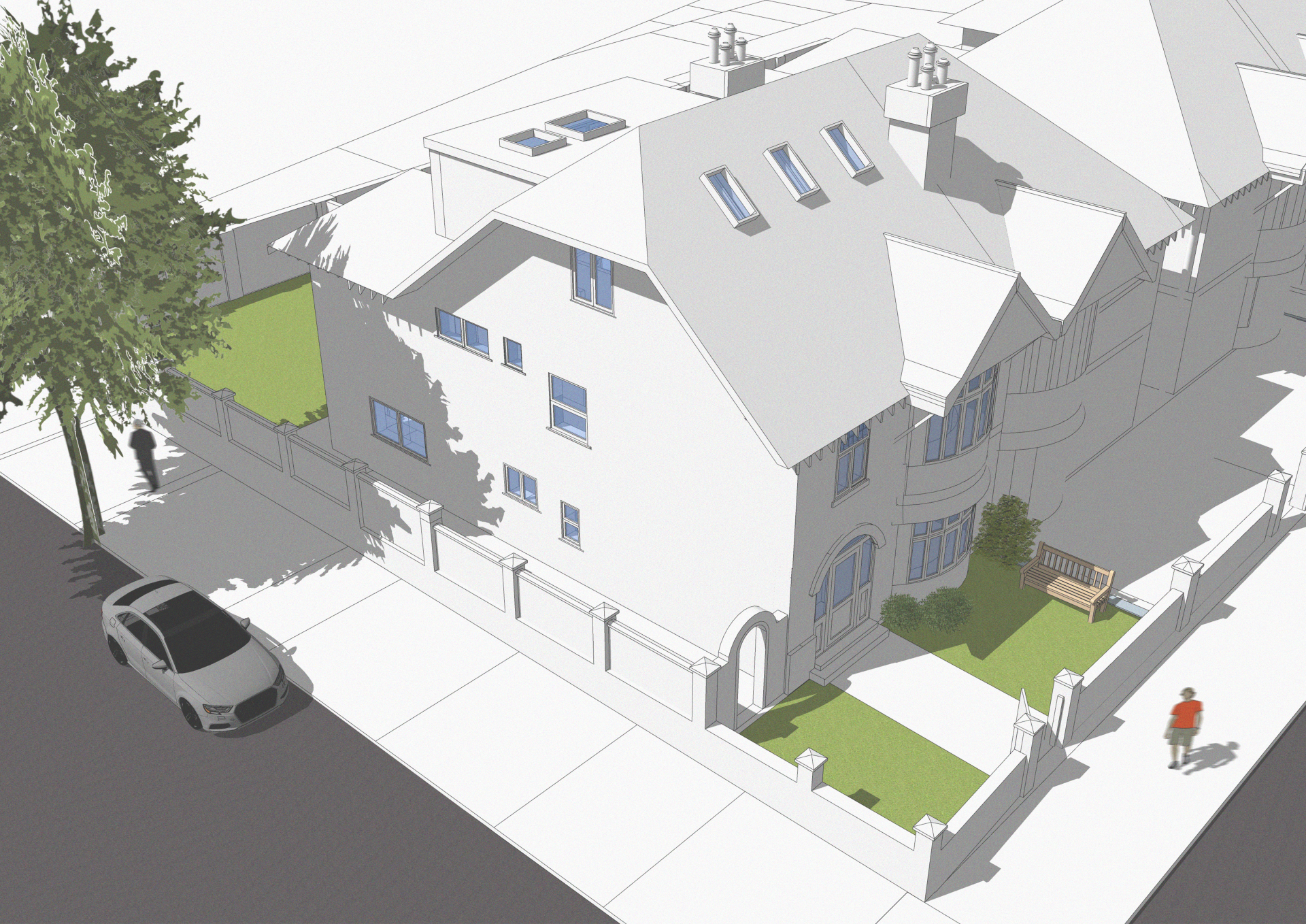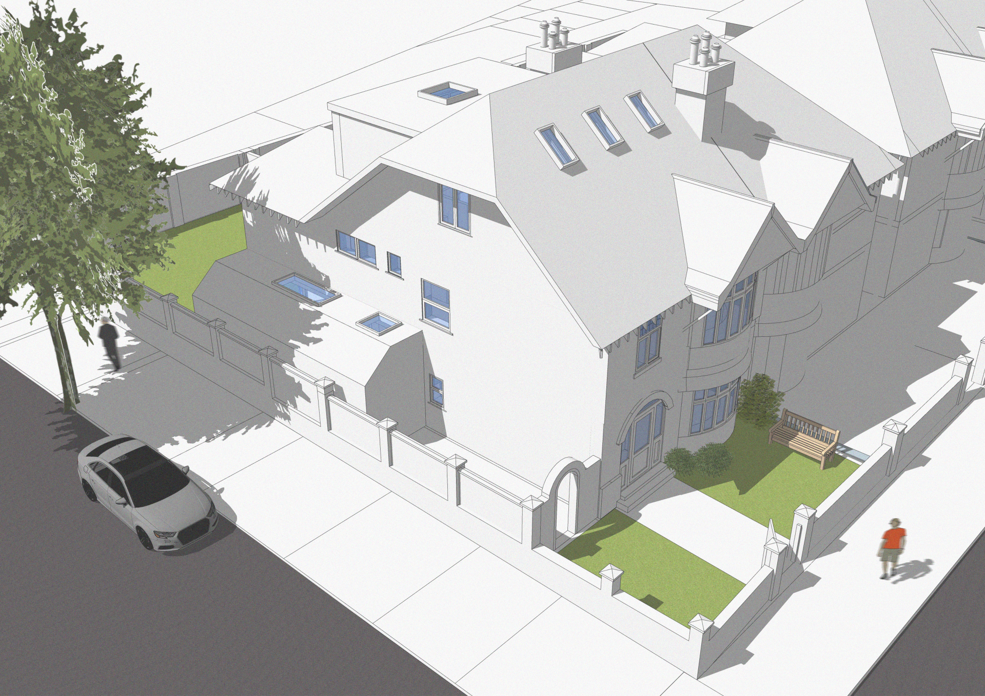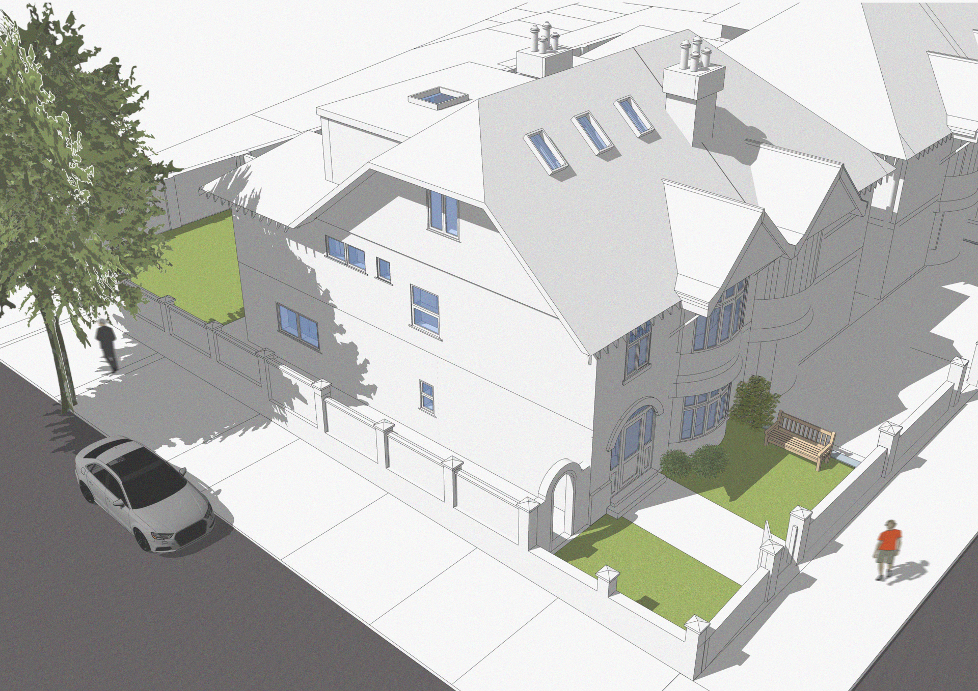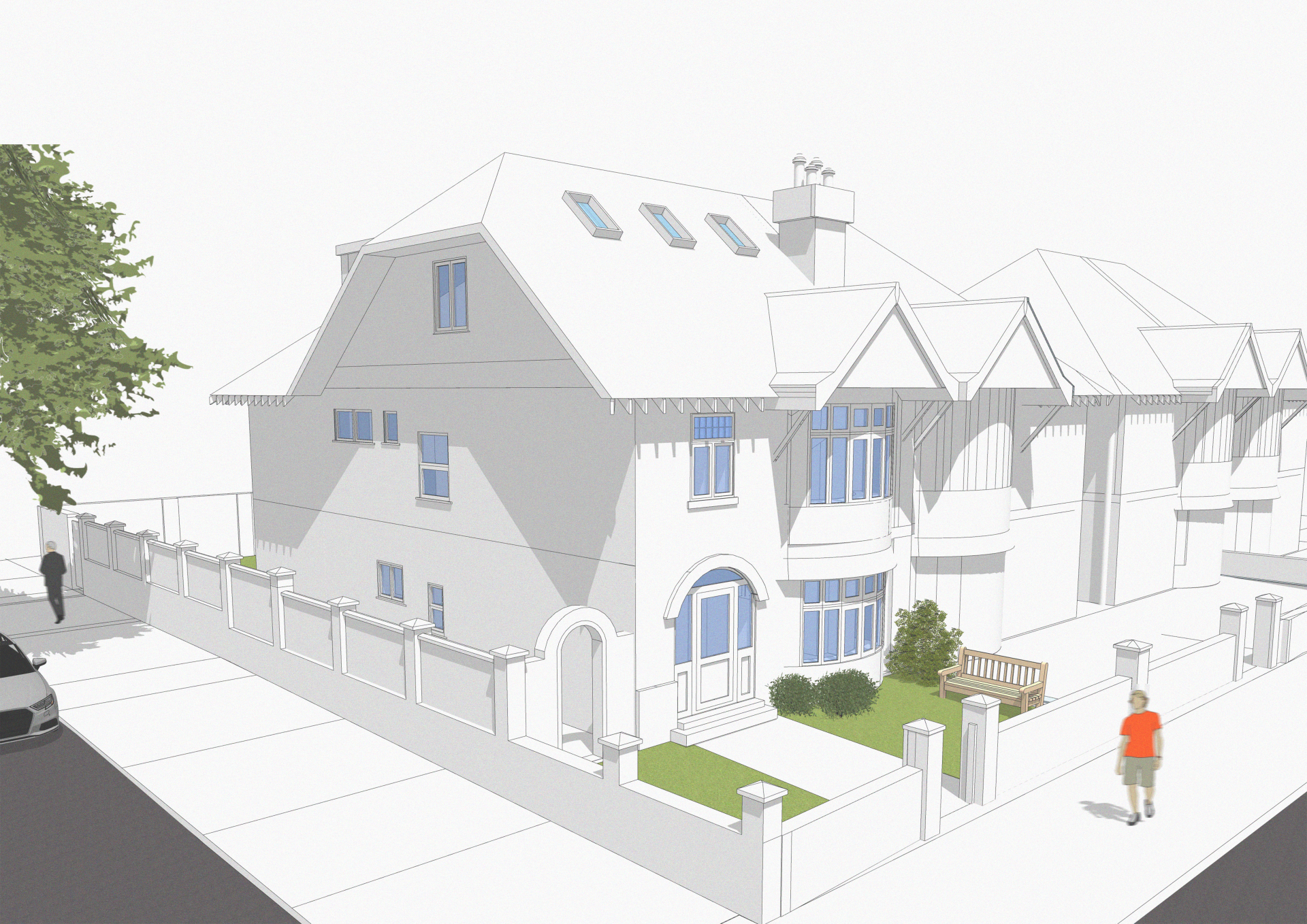 This project in Hove is at concept design stage and incorporates amongst other things a side infill extension, loft extension and hip to gable conversion. As with all our projects we provide a brochure of 5 or 6 design options all of which are explored in 2D and 3D. This is a reflection of our client’s brief and is sent by email as a PDF document. Once our client has had a chance to review, we will then visit them at their property to run through their thoughts and discuss all aspects of the proposals brochure. We will then have a preferred scheme which is developed in further detail.