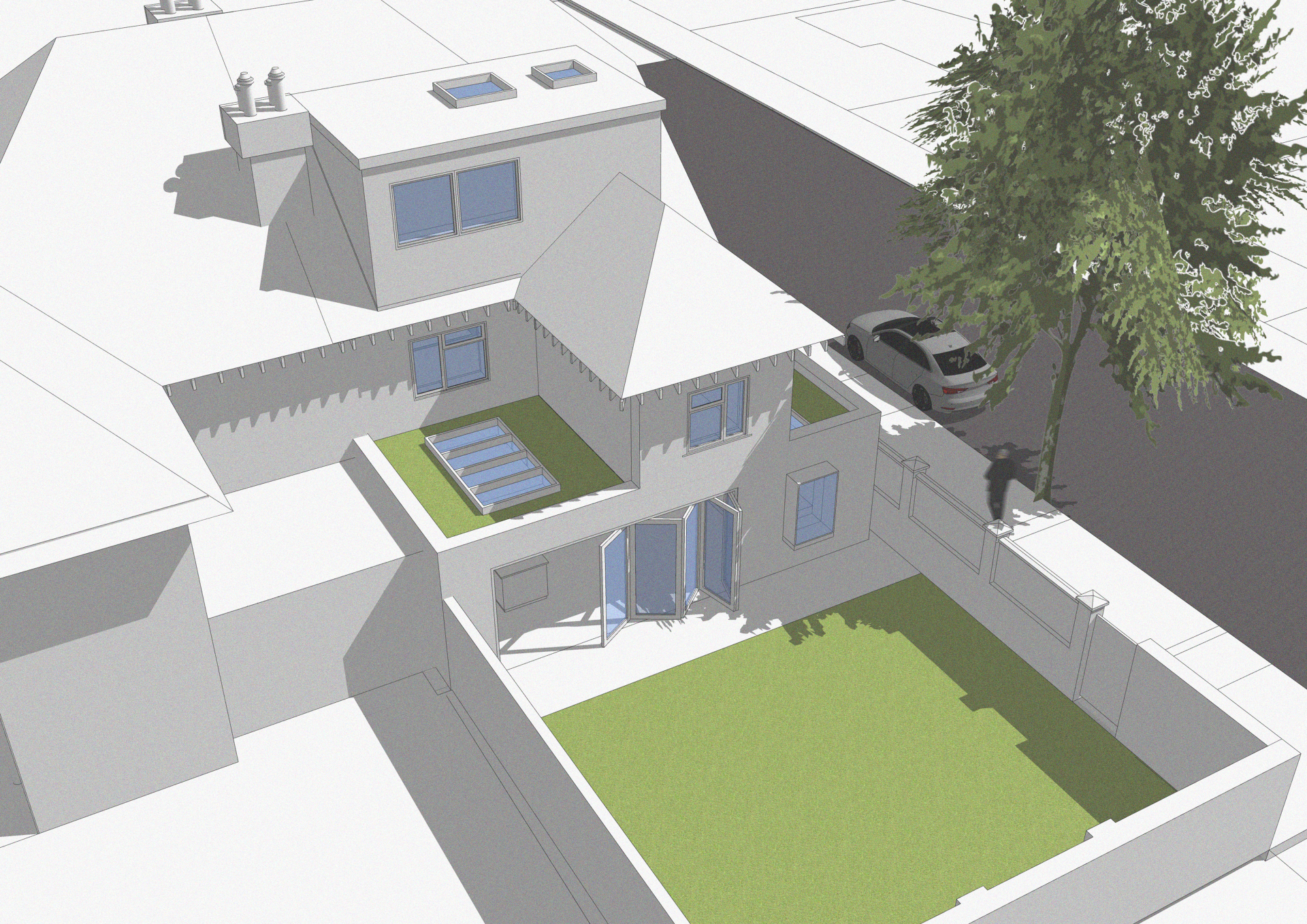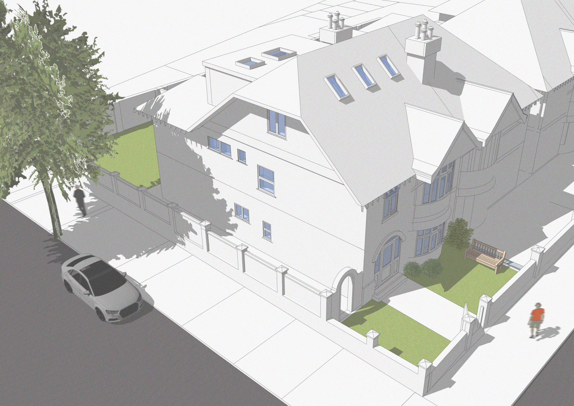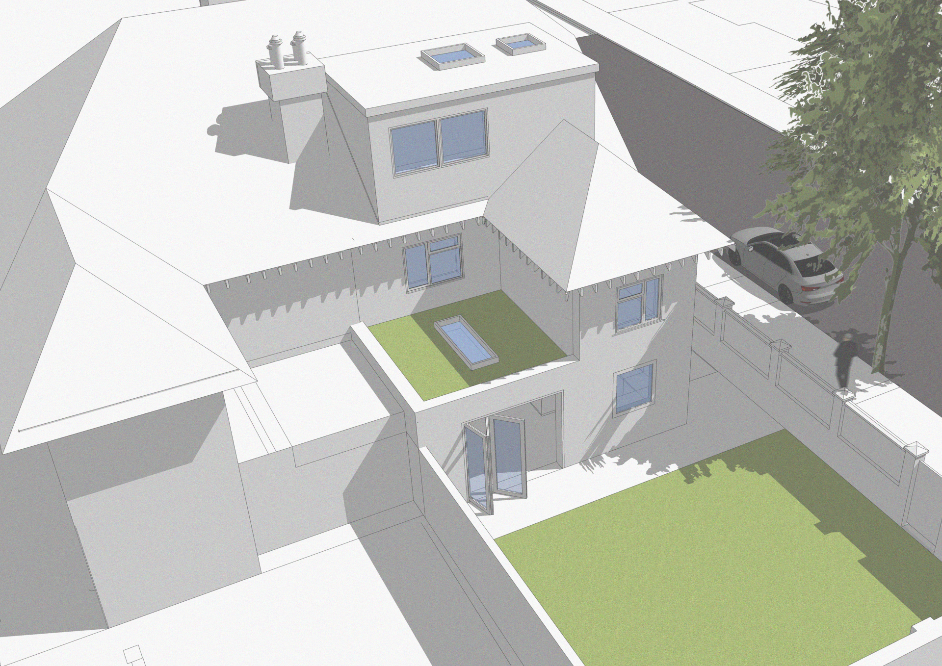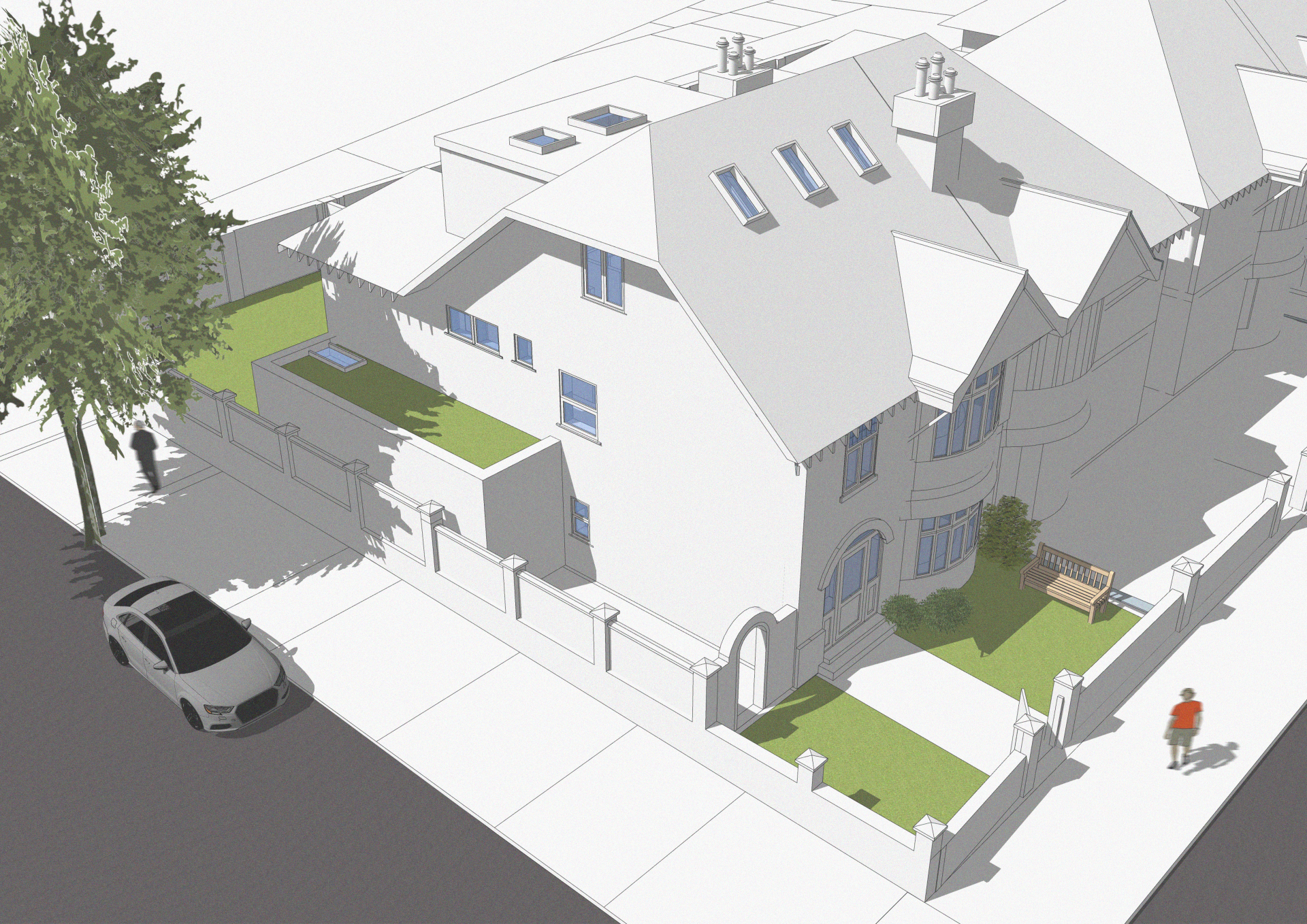 This project in Hove is at concept design stage and incorporates amongst other things a side infill extension, loft extension and hip to gable conversion. As with all our projects we provide a brochure of 5 or 6 design options all of which are explored in 2D and 3D. This is a reflection of our client’s brief and is sent by email as a PDF document. Once our client has had a chance to review, we will then visit them at their property to run through their thoughts and discuss all aspects of the proposals brochure. We will then have a preferred scheme which is developed in further detail.