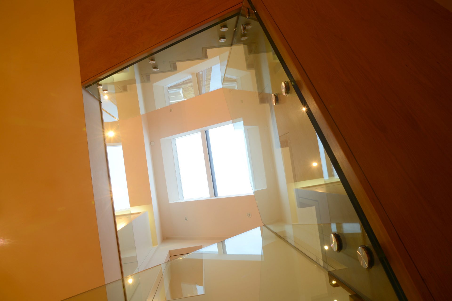 Stairs to basement extension are also important. They can follow the logic of the existing flights or else be located as a feature stair. Elegant stair design has been a feature of our basement projects. Several projects have combined the use of large amounts of glass with a feature stair and this has typically been in the form of a glass cube with the basement stair set within. This floods the interior with daylight and ensures an excellent visual connection between basement and garden beyond.