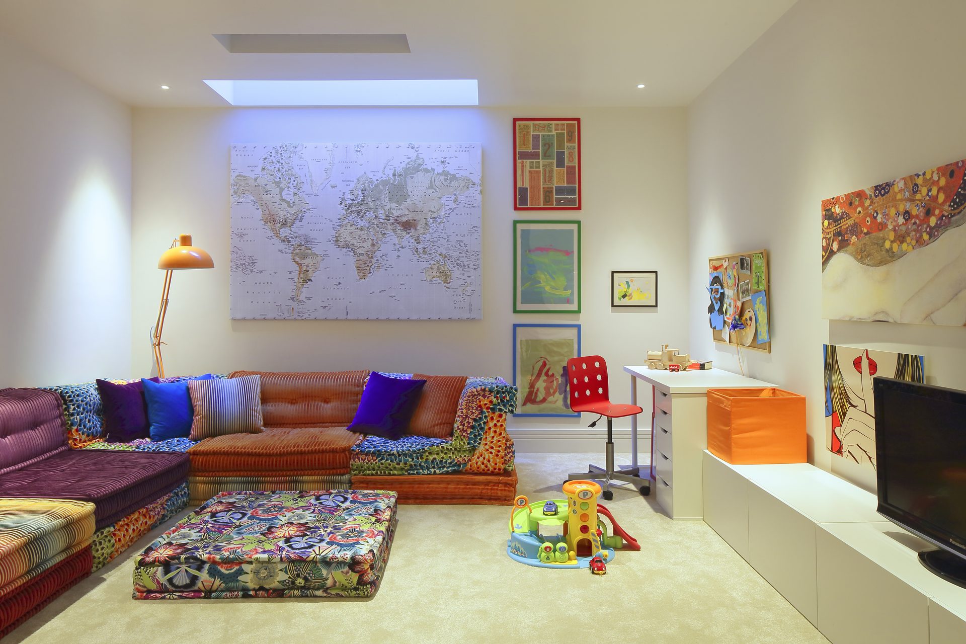 Common to all our basement projects is the use of natural light through a variety of sources in order to create light bright contemporary basement spaces. As a guide, natural light should be brought in through a variety of sources which will also make for a more interesting interior space. A number of our projects have views to the sky from the basement and this is achieved via feature stairs with large format rooflights over them. Structural glass panels in the floor also brings light down. As do light shafts linked to rooflights. Large format glazing to the rear lightwell works very well. As can a third centrally located lightwell. Glass balustrades to stairs also help bounce light around.