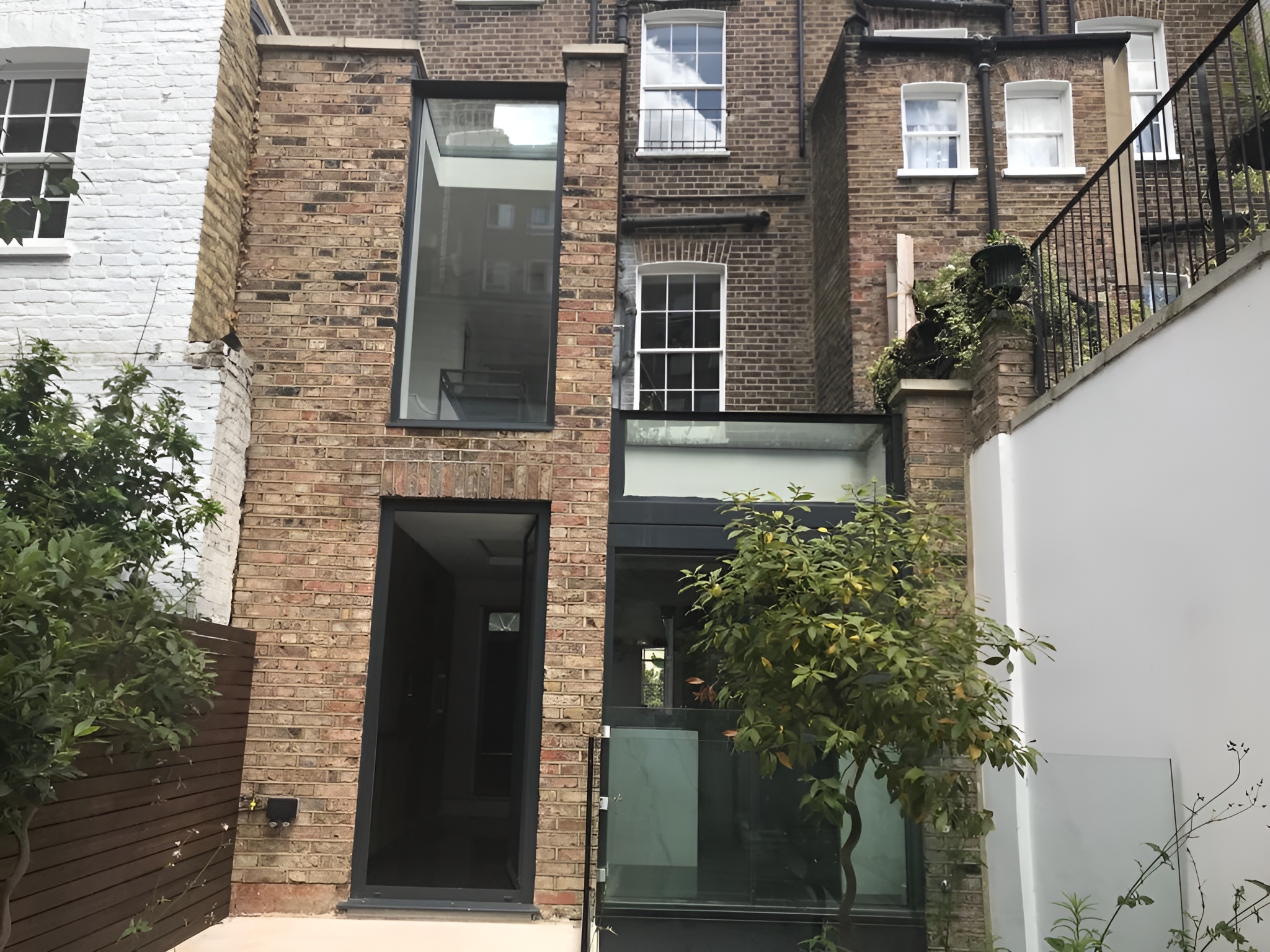 Our portfolio of work includes many listed building projects throughout London. These very often see the transformation of a home through a contemporary re-working of the interior, coupled with the addition of elegant extensions. Here in Westminster the transformation of a grade 2 listed building sees extensions with green sedum roofs, extensive roof lights and contemporary glazing with glass to glass frameless detailing. This project really is a contemporary reworking and extension of a listed house in Westminster.
