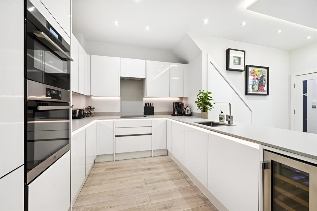 This has totally changed the nature of the property with the addition of a considerable amount of floor space. The feeling of small tight spaces is now gone and replaced with a sense of space in a light filled and contemporary interior. A large reception room with Kitchen is formed and two additional bedrooms have been added. As with all our projects the opportunities to bring natural light into all parts of the property are explored. Rooflights and structural glass panels help much in this regard.