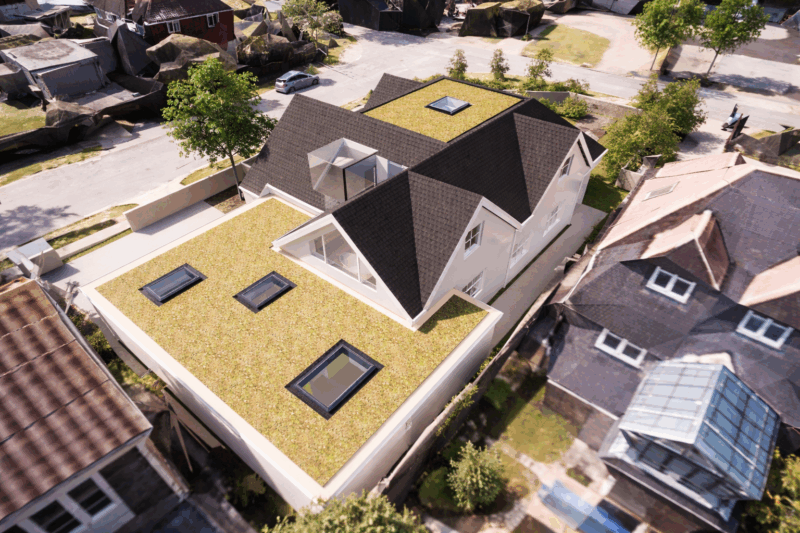 This project is successful in gaining planning permission to change a fairly typical bungalow into a striking contemporary home with views of the sea and the added benefit of a large roof terrace.