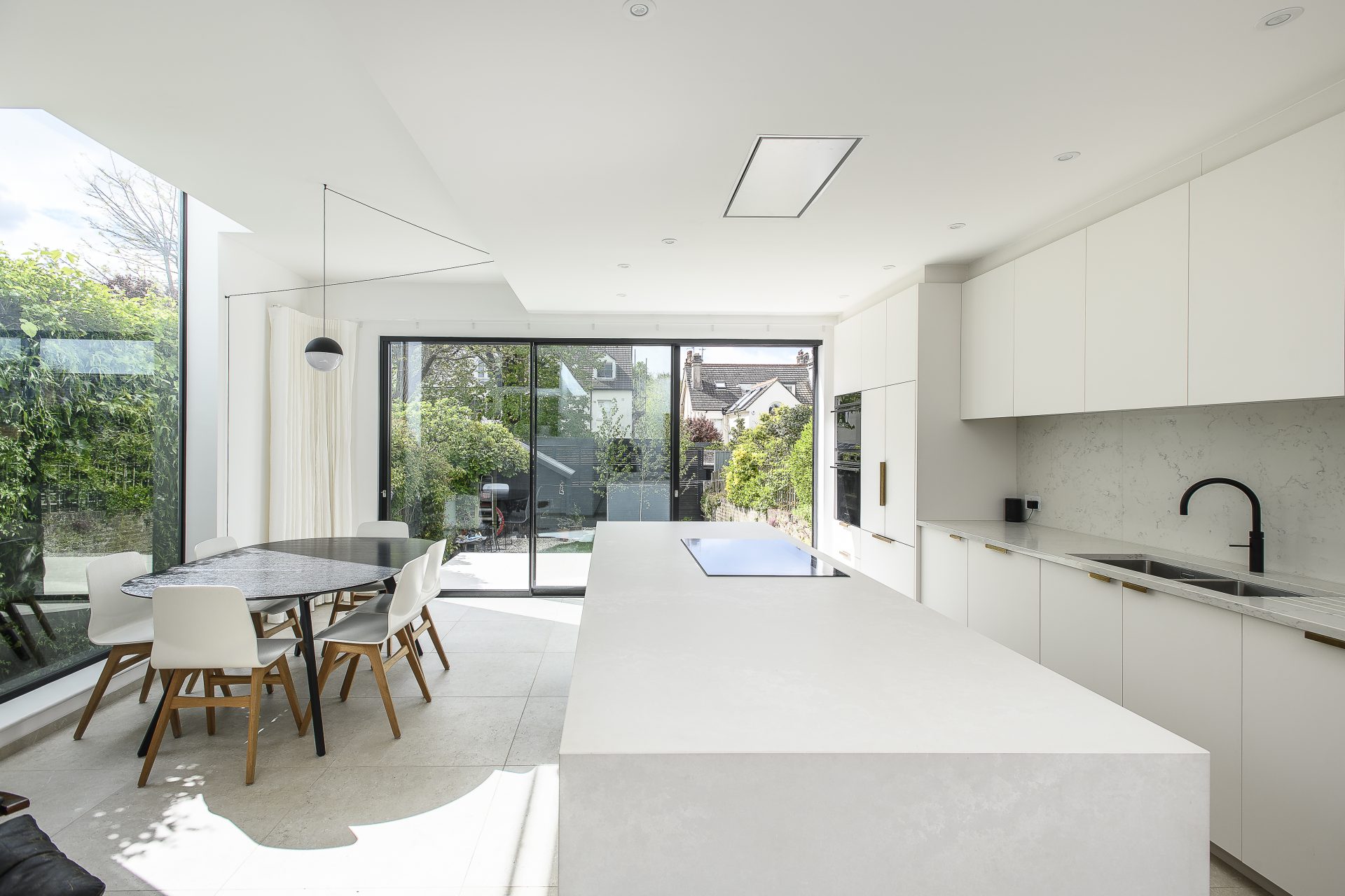 Along the seafront in Brighton and Hove and the squares behind, we continued to create contemporary homes from listed buildings. In several instances we combined two existing smaller rooms to create one large living, kitchen and dining space with views of the sea. It is a striking transformation.