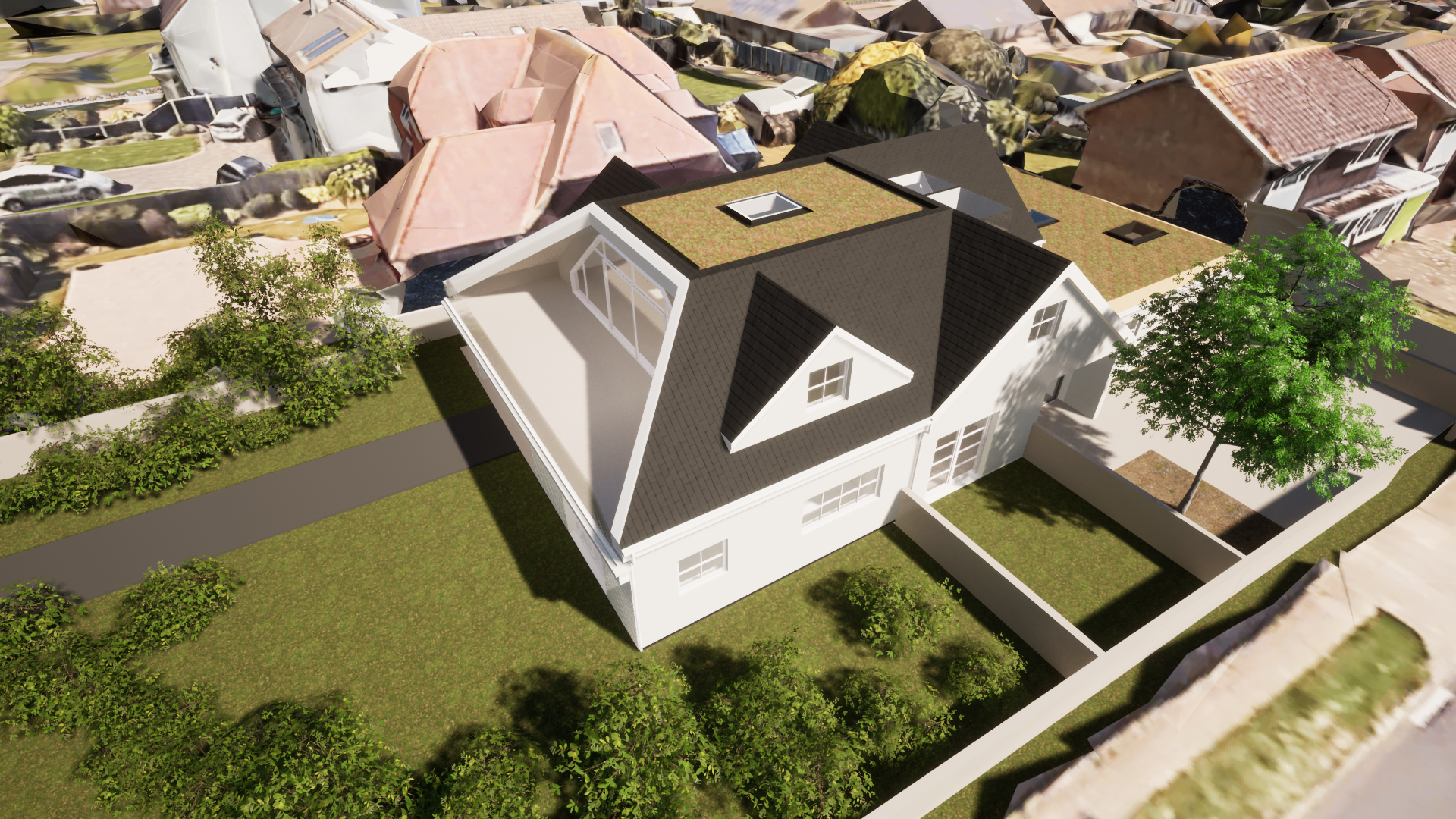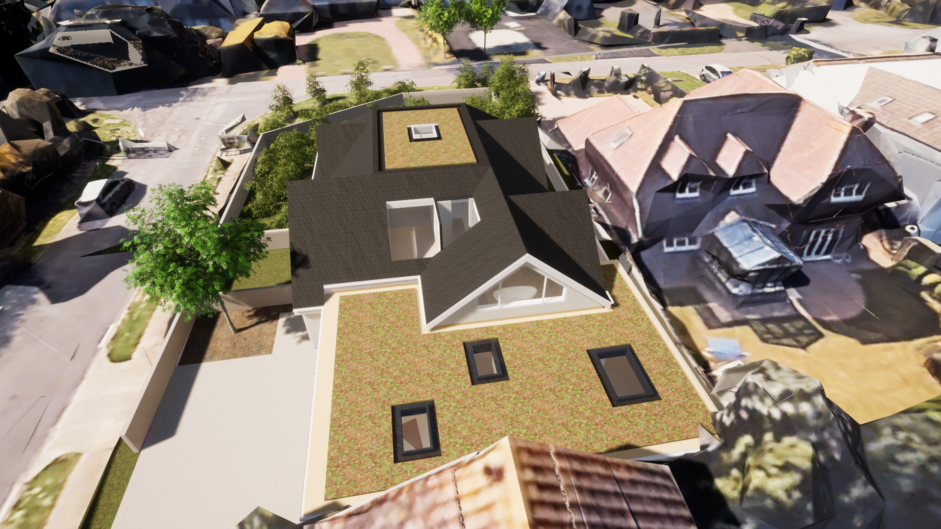 At the Ground floor extension, a series of en-suite bedrooms are developed as is a new spacious entrance to the property. A landscape scheme is also designed providing a mix of quiet and social spaces.