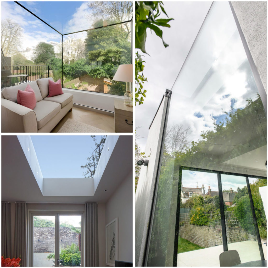 Our work no matter what the scale or type is characterised by the use of glass in a variety of forms. Creating a sense of transparency and light filled interiors with views and glimpses between spaces. Breaking down the boundary between inside and outside. From glass cubes incorporating feature stairs, to structural glass floors and large format roof lights set within green roofs, each project is defined by its creative use of glass. Longstanding relationships with high quality glazing companies such as Maxlight ensure our glazing installations are elegantly and effectively designed and detailed. Details such as frameless glass junctions are prime examples of this expertise.