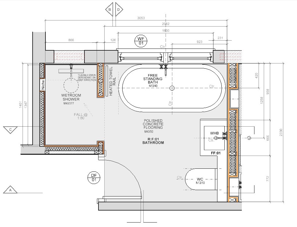 We have a wide-ranging experience of bathroom and walk-in-wardrobe design and fully understand what is required to make these small spaces successful.  This is evidenced in the detailed technical drawings we produce of floor plans and all internal wall elevations and in the quality of the finished space.