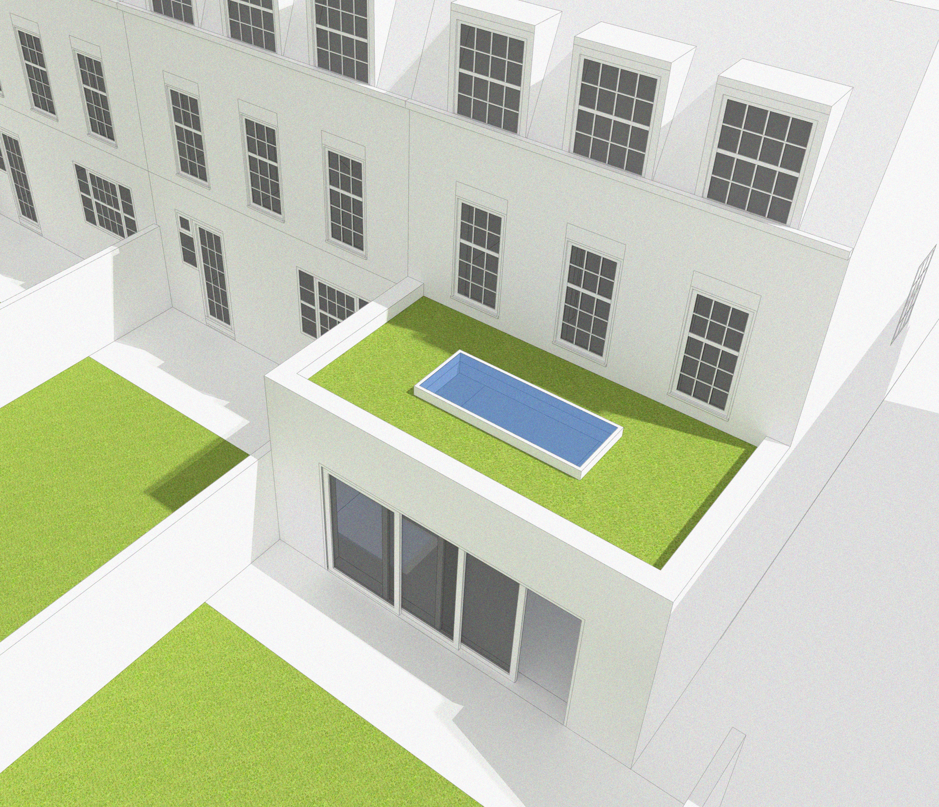 Shape architecture has obtained planning permission for the extension and reworking of a townhouse in Newstead Road in Wimbledon.  The property is a 3-storey townhouse.  The project involves the conversion of the garage into habitable space and the addition of a rear extension with green sedum roof.  The house is opened up to create a light, bright and contemporary interior.